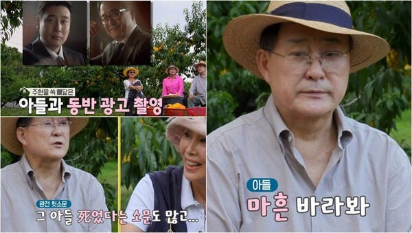 완전 헛소문으로 아들과 같이 양복 광고 촬영까지 했었다고 해요. 결혼 안 하는 아들이 빨리 결혼했으면 좋겠다고 속마음을 내비치며 이상 없음을 보여주었어요.